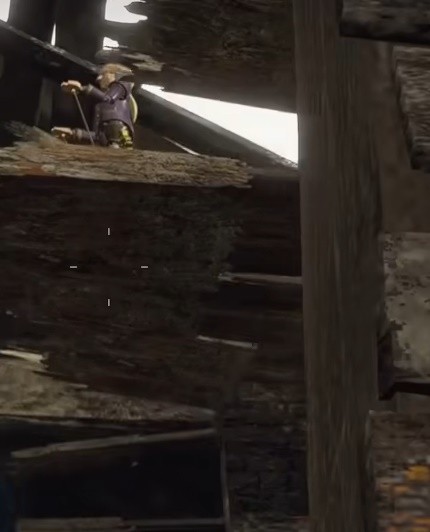 湖畔聚落西南边破木屋的房梁上,就是有人扔雷管的房间里面,可以从侧面进去。