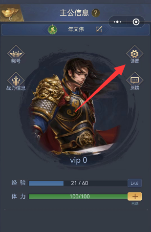 2、第二步:在主公信息页面中,我们点击右上角的齿轮【设置】按钮。