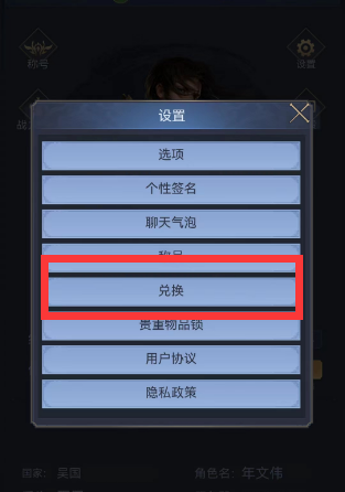 3、第三步:在设置菜单中的下图位置,我们可以找到【兑换】入口。