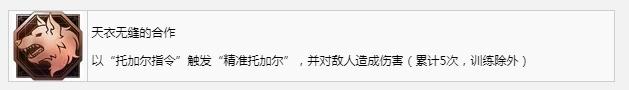 天衣无缝的合作:以“托加尔指令”触发“精准托加尔”,并对敌人造成伤害(累计5次,训练除外)