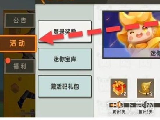 打开迷你世界,点击右上角的礼物盒,点击活动选项,点击激活码礼包按钮即可兑换。