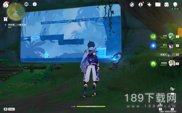 4,乘坐飞车,顺着洞窟继续前进,完成映灯的解密(里面有一个宝箱,可以顺手拿了)