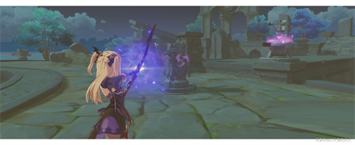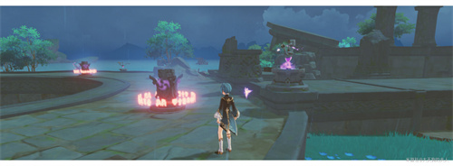 3、四个探针全都指向了中间后,雷元素方碑的禁锢会接触,使用雷系角色快速将其点亮。