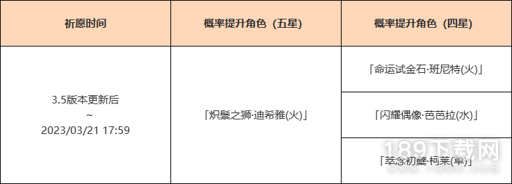●活动结束后,5星角色「炽鬃之狮·迪希雅(火)」将在下一版本进入「奔行世间」常驻祈愿。