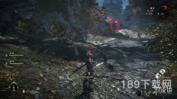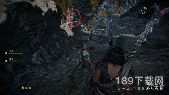 6、第五个牙旗朝着平台方向一直跑,岔路口左边上方的岩石。