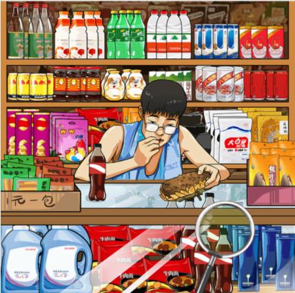 1、这一关是使用放大镜,在小卖部中找出假货,我们需要仔细看