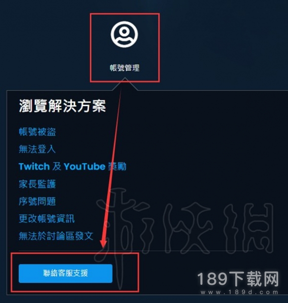 选择右上角的客服支援-账号管理--联系客服支援。