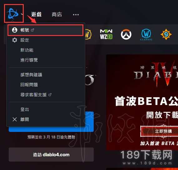 打开加速器,加速暗黑4,随后在战网客户端处打开自己的战网通行证账号中心。