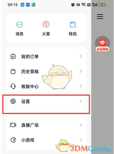 2、然后在该页面中点击设置选项;