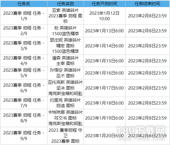 2023赛季启程任务具体奖励和任务时间信息如下: