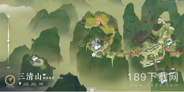1、首先我们需要来到三清山(1051,846),这个位置跳崖下去,下去之后我们就会出现在一个平地上;