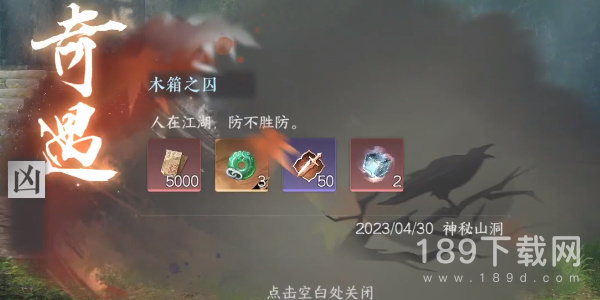 4、击碎宝箱之后虽然人消失了,但是我们可以看到宝箱中有发光的东西我们进行捡拾,捡拾完成之后我们在空地转几圈就可以完成奇遇任务木箱之囚了;