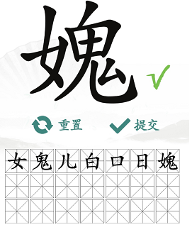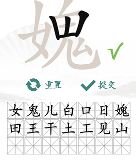 3、首先我们把女鬼拆分,看看是哪些字组合在一起的,可以得到【女、鬼、儿、白、口、日、媿】。