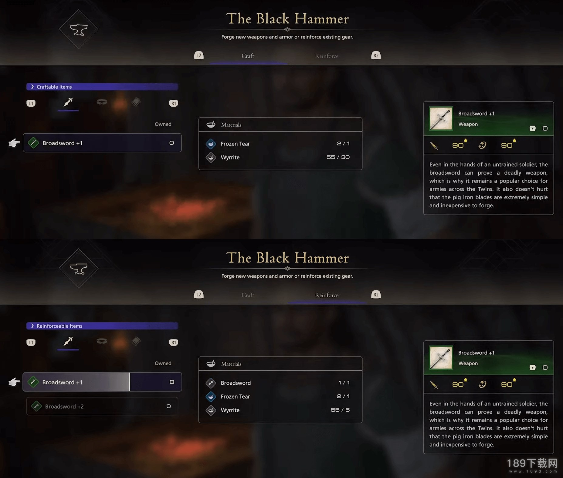 在据点可以进行装备的制造或升级,需要消耗材料。根据所制造或升级装备的稀有度,来消耗对应品质的材料。与商店类似,可以按L2/R2来切换制造和升级页面,只要确保材料足够即可进行。