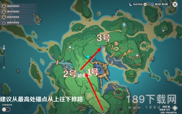 这里我们传送到南边的最高处锚点,从上往下依次铺路,,下面是具体路线和编号,接下来我会按照此顺序进行叙述。