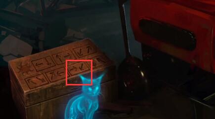 6、然后将→相同的箭头找到其所在格子,并且下一位是↙,其第三位密码为↙。
