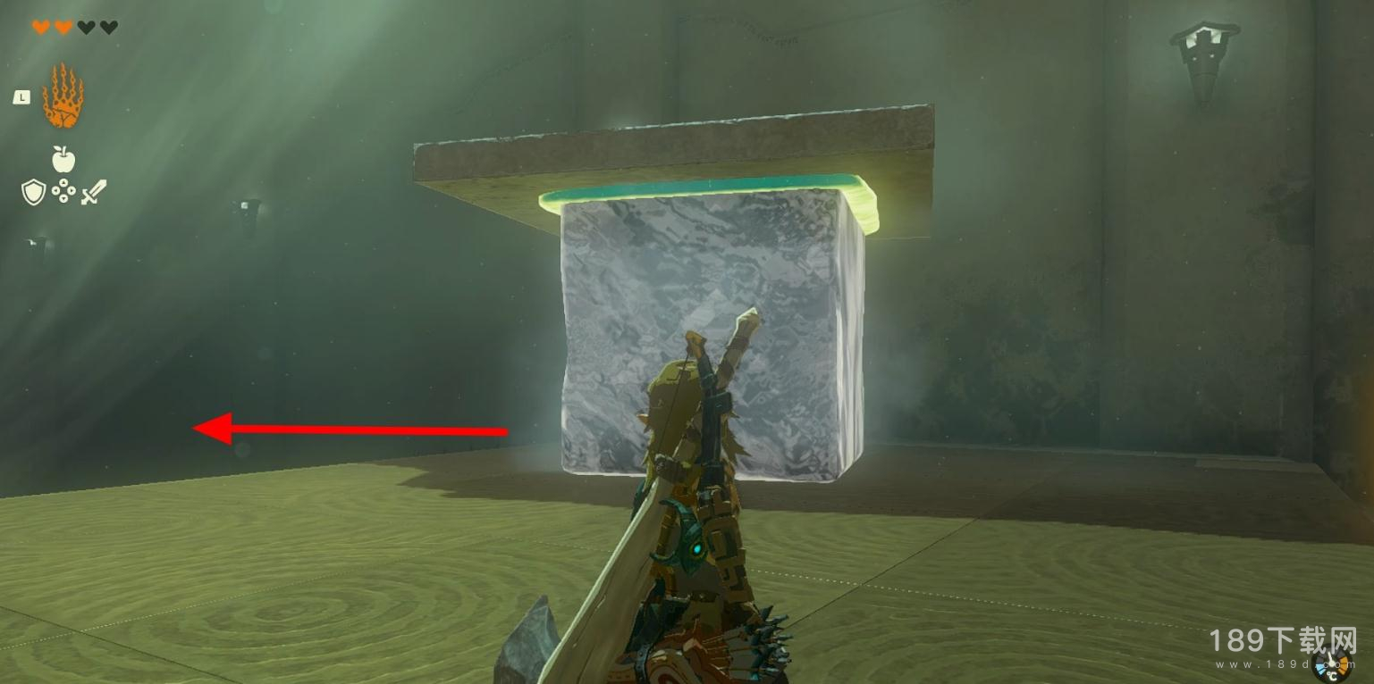 进入神庙后拿起大冰块将其放入火种炙烤,让冰块的体积变小。
